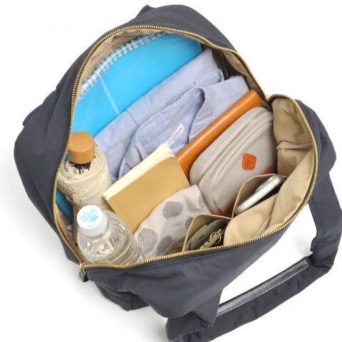 中には長財布、500mlペットボトル、折り畳み傘、その他お出かけ携行品などが綺麗に収まりました。