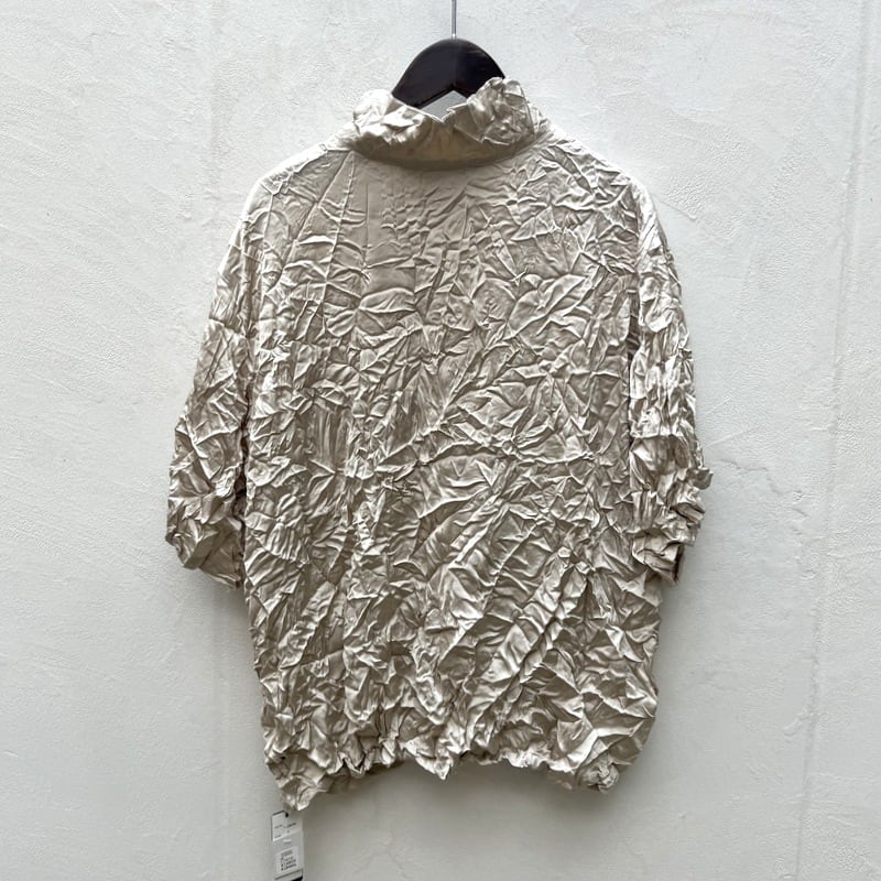 サテン地にワッシャー加工を加えたワッシャーハーフスリーブシャツです