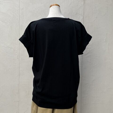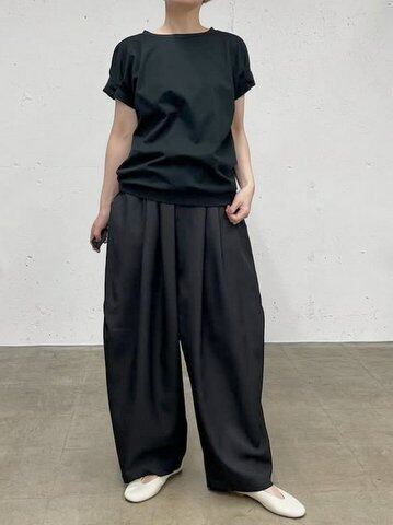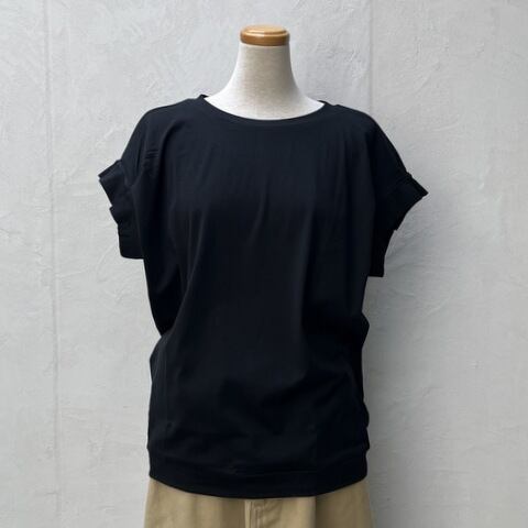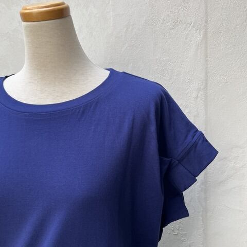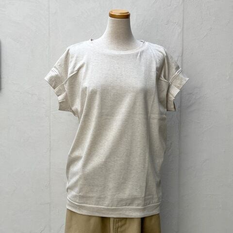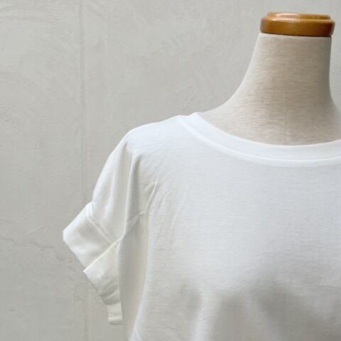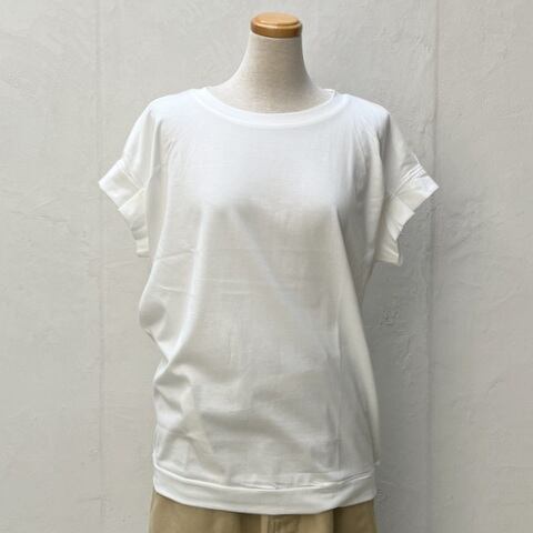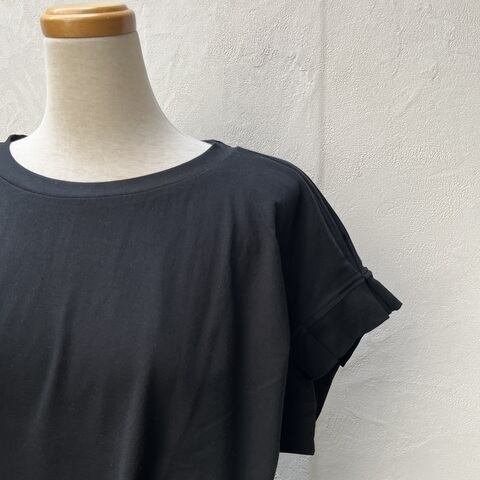 スーピマコットン60天竺シルケット素材を使用したフリルスリーブクルーネックプルオーバーです。