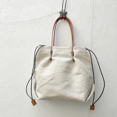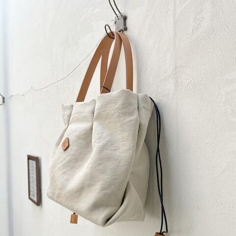 ナチュラルな風合いのウォッシュドコットンジュート素材を使用。持ち手にはレザーをあしらい、上品な印象と快適な持ち心地を実現しました。