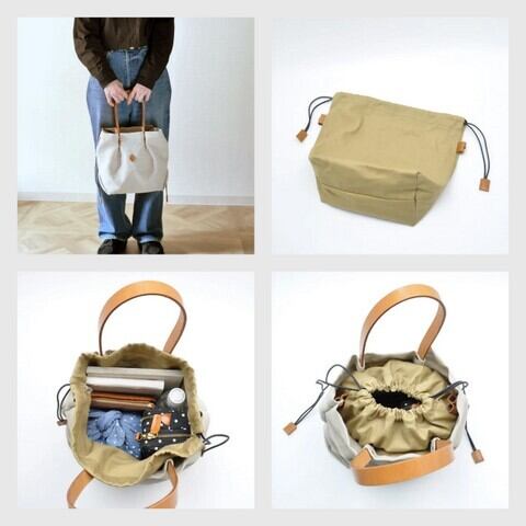 素材 本体:ウォッシュドコットンジュート 内生地:綿 革付属:牛革