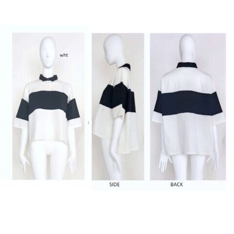 ポンチョのようなゆったりとしたワイドシルエットで、目を引く配色が特徴的なプルオーバーシャツ。