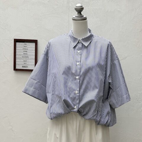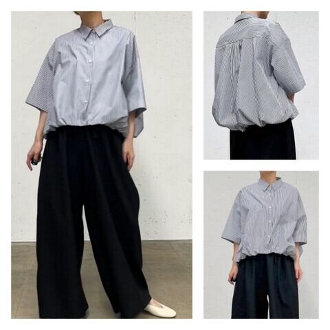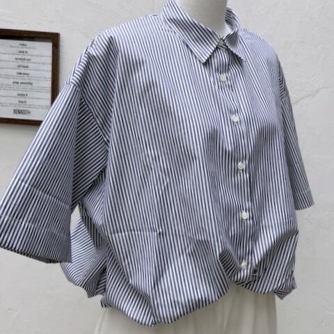 ストライプハーフスリーブバルーンシャツ|mizuiro ind