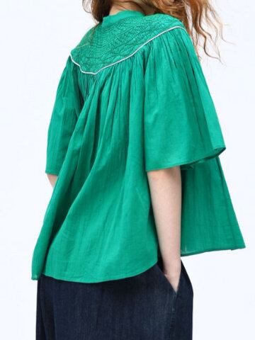 ハンドワーク手法を取り入れたインドで生産するブラウス。