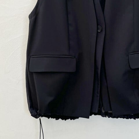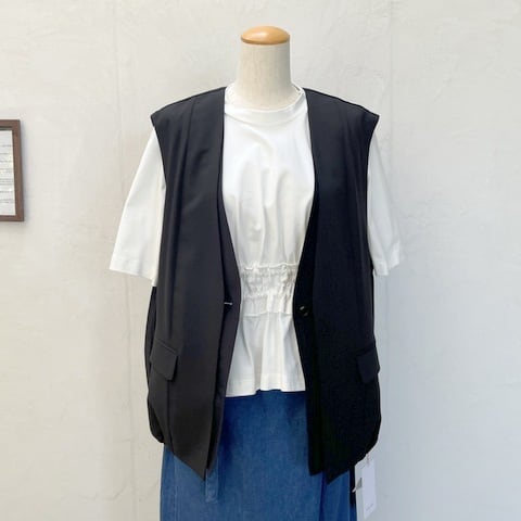 フロントはマットな生地感でジレのような印象、バックにはシアー素材を贅沢に使用した、デザイン性の高い異素材ミックスベストです。