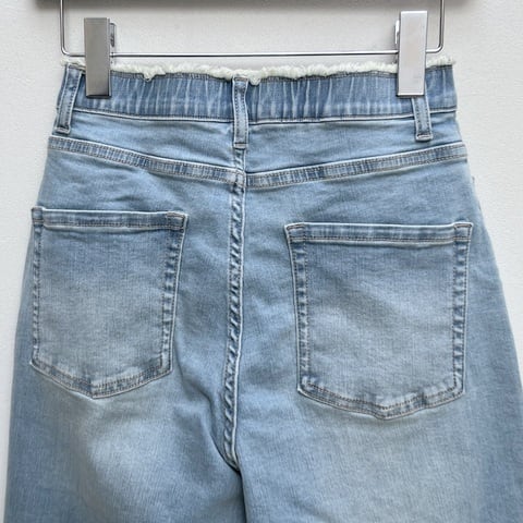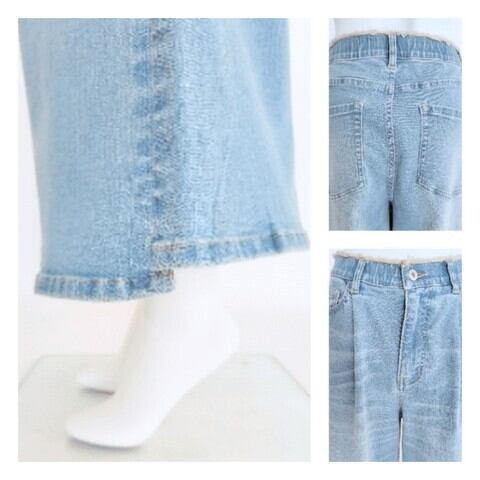 コットン×ポリエステル混紡による軽やかな生地感で、一般的なジーンズよりもやや薄手。