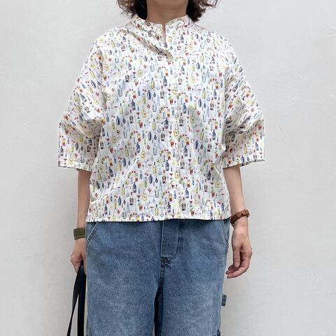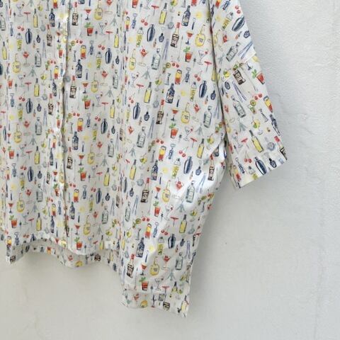 色とりどりのカクテルやボトルの柄は、子どもっぽくならず大人の着こなしにしっくり馴染みます。