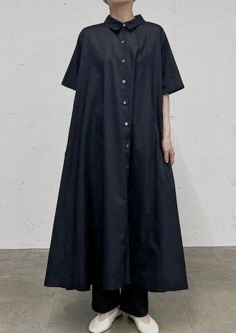 mizuiro-ind(ミズイロインド) ハーフスリーブフレアシャツワンピース 2-250085