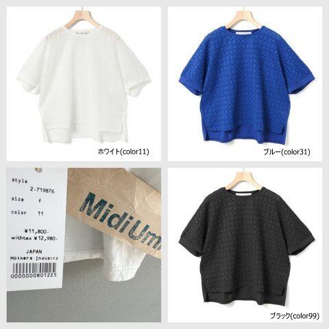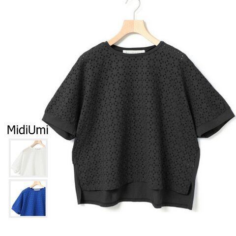幾何学模様のレースとカットソー生地を組み合わせた、*MidiUmi(ミディウミ)*のフロントレースプルオーバー。