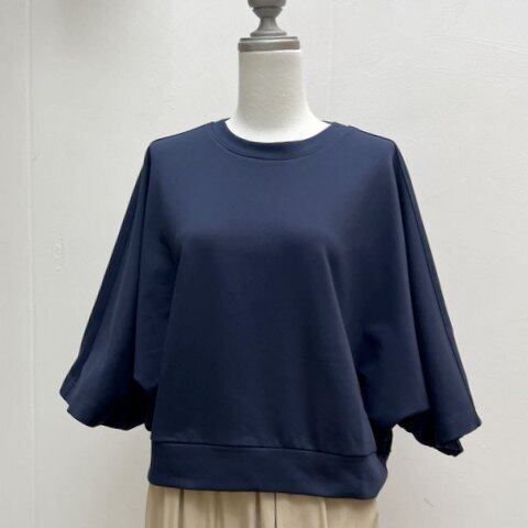 丸いフォルムが女性らしいドルマンスリーブのミニ裏毛Tシャツ。素材には、コットン素材のミニ裏毛を使用。通気性が良く、裏側が繊細なパイル組織の為、肌触りが滑らかで着心地が良いのが特徴です。一見シンプルですが、パターンテクニックに拘りドルマンスリーブにすることによって、肩や腕周りをゆったりさせながらも、華奢に見せてくれるシルエットに仕上げました。また体のラインを拾わず、女性らしい柔らかな印象を演出。まだ暑い秋立ちの季節に、さらっとTシャツ感覚で着用できるアイテムです。