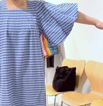 L'ours Polaire et Bleu(ルスポレ) ギンガムチェック バルーン袖 ワンピース 25315002