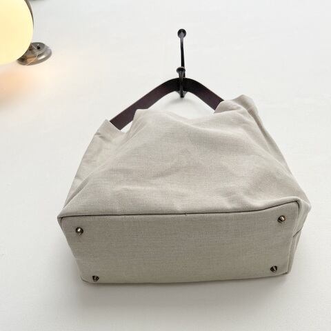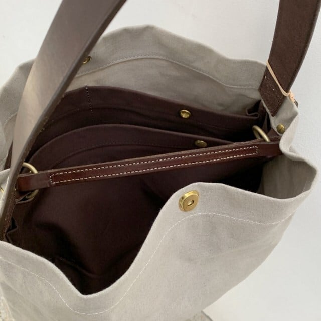 中にレザーのハンドルが付いているので手提げとしても使える2way仕様です。