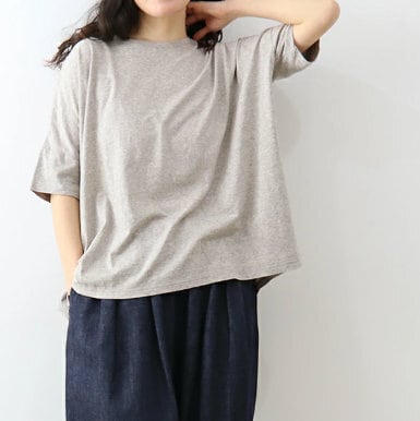ふんわりとしたソフト天竺素材で仕立てた、やわらかく軽やかな着心地の半袖Tシャツです。