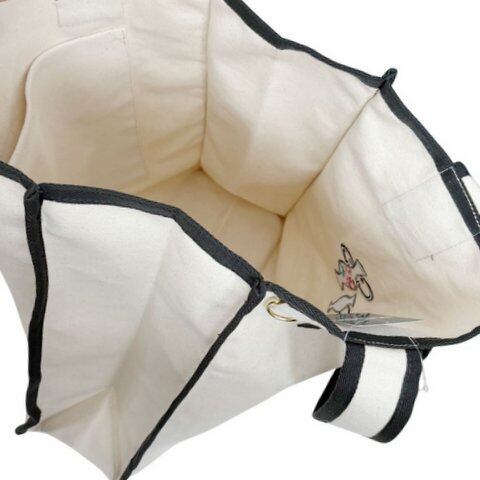 大き目のバッグなので、棚上段に置いて飾ってもお客様の目をひきます。バッグハンガーやラックに掛けて展開すると柄の可愛さが引き立ちます♪