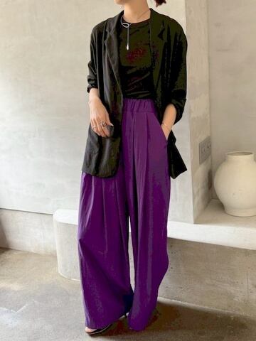 程よい光沢とワッシャー加⼯によるナチュラルな表情とドレープでカジュアルながらも⼤⼈っぽい仕上がりですෆ ̖́-