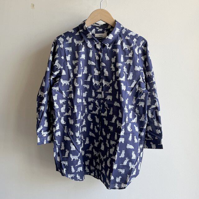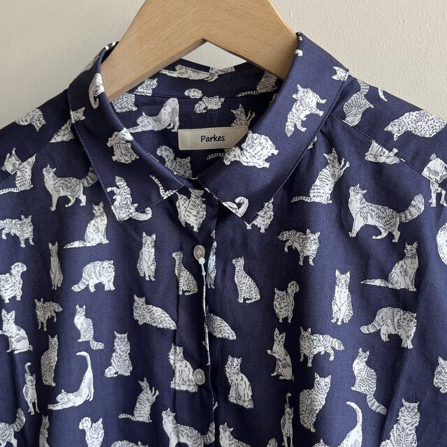 Parkes(パークス)リバティプリント <Meow>(ミャオウ)【ネイビー】シャツカラー ブラウス PH2531031