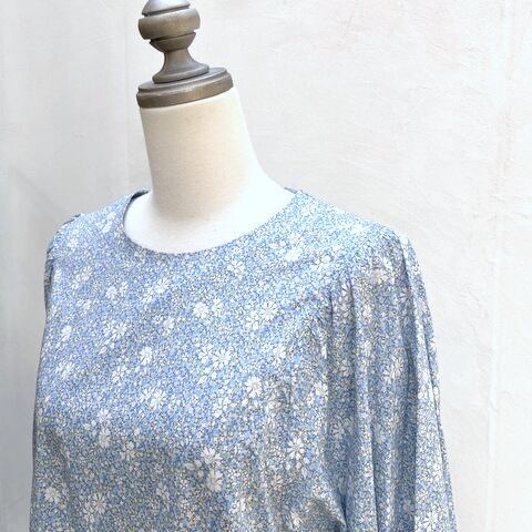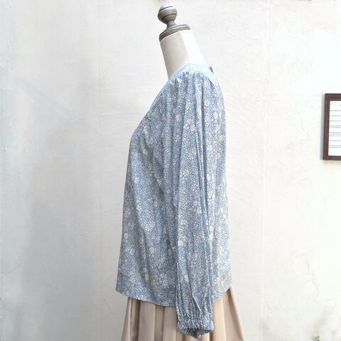 J.Sloane (ジェイスローアン)ギャザー袖 ノーカラー ブラウス<Capel Pepper>(カペル・ペッパー)【サックス】(SH2511027)