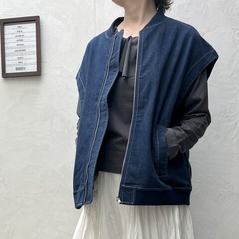 色落ち感のあるデニム生地は、羽織るだけでこなれた大人カジュアルに。