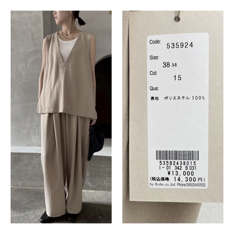 cafune(カフネ)ドレープワッシャー Vネック ベスト 535924 キャメル