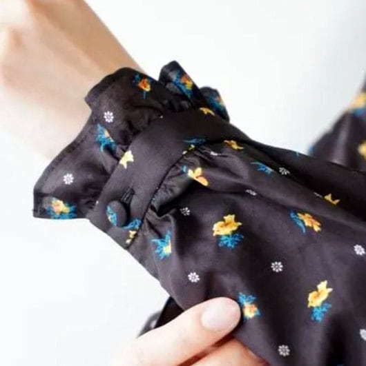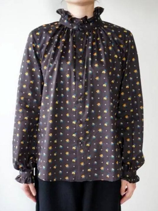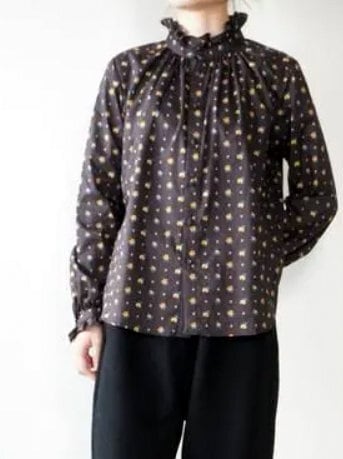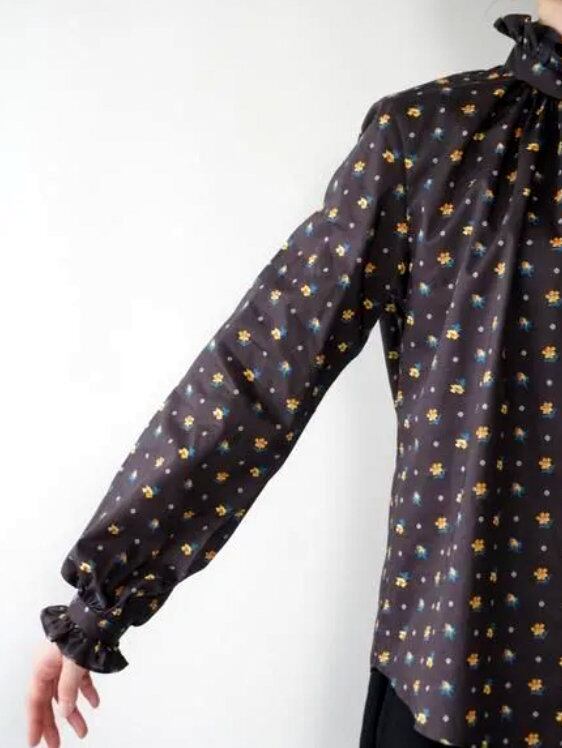 華やかで上品な雰囲気のリバティ「CLIO(クリオ)」柄を使ったフリルブラウス。