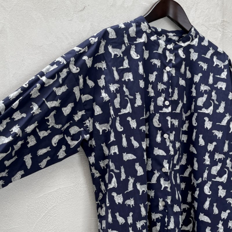 Parkes(パークス)リバティプリント <Meow>(ミャオウ)【ネイビー】バンドカラー シャツブラウス PH2532026