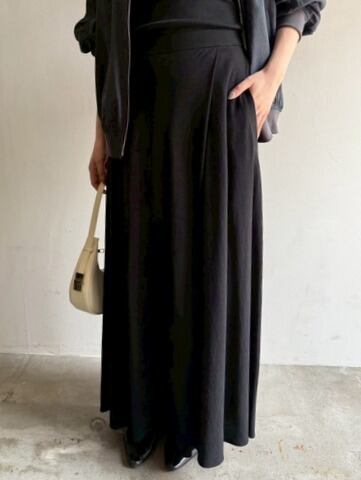 ドライタッチで軽やかな素材を使ったタックスカートです。