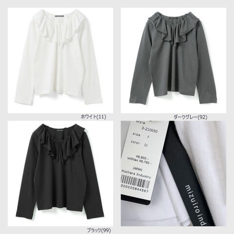 mizuiro-ind(ミズイロインド) フリルカラーロングスリーブプルオーバー 3-210050