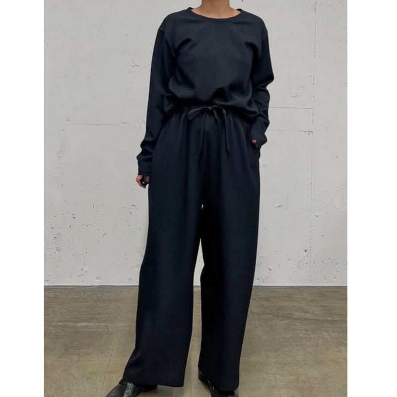 ベーシックカラーで揃えた着まわしのしやすいイージーパンツとなっています。