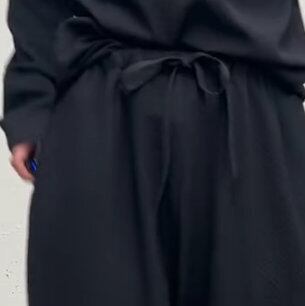 細すぎず太すぎないサイズ感でウエストゴムと調整紐付きのリラック感のあるデザイン仕上げです。