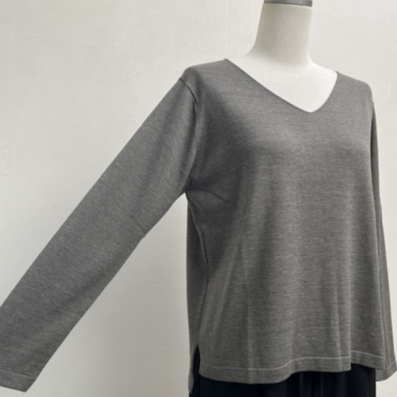 Vネックラインが首元をすっきりと見せるプルオーバー。