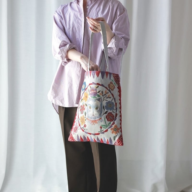 ナタリー・レテが描く、動物や植物たちのユーモラスで不思議な世界を、繊細なゴブラン織りで表現したトートバッグ。