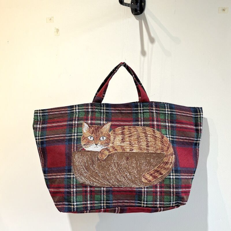ゴブラン織りのボートトートに松尾ミユキさんのやさしいタッチのイラストを落とし込みました。