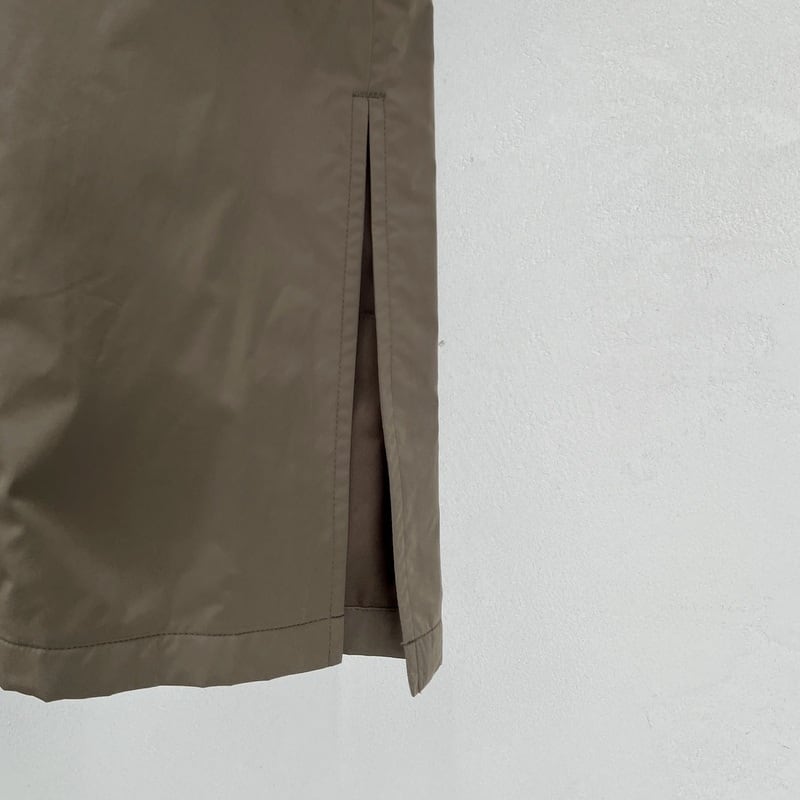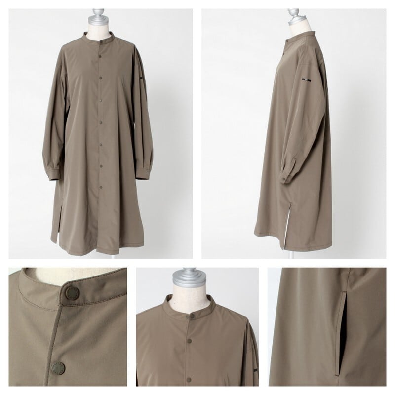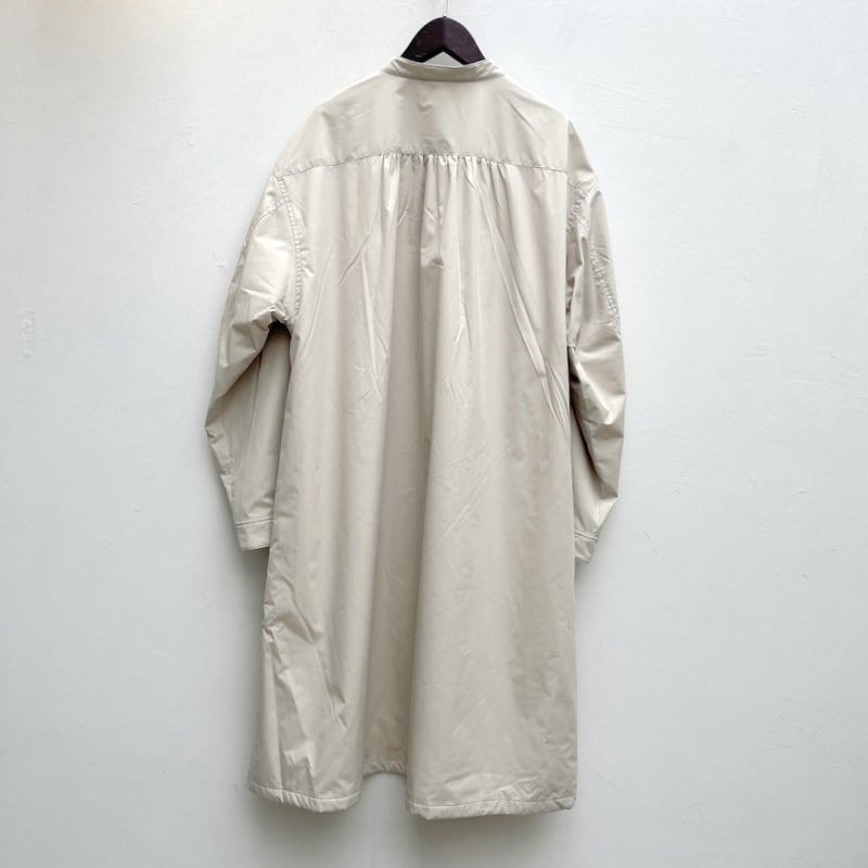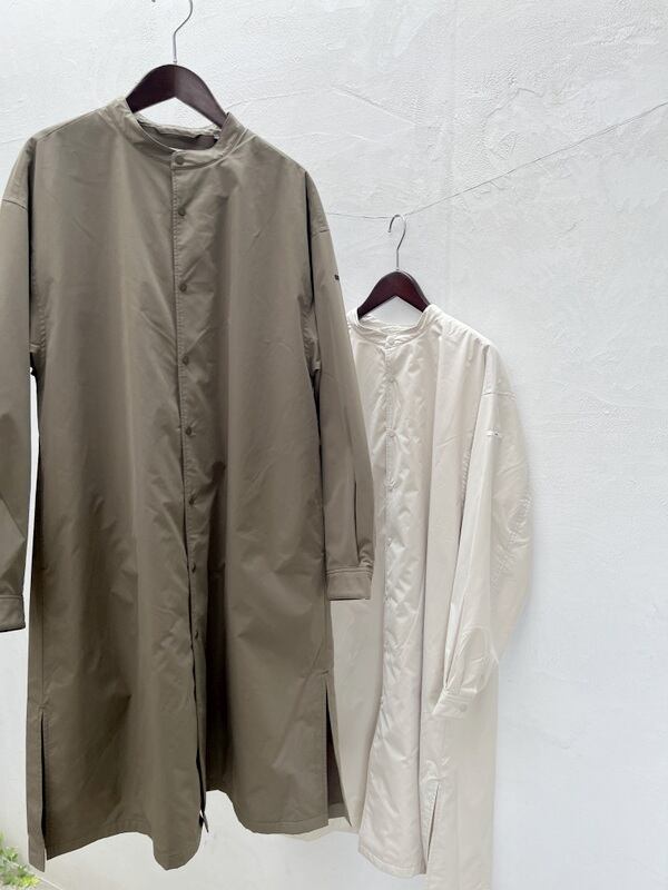 バンドカラーが印象的な、軽やかなロングライトアウター。
