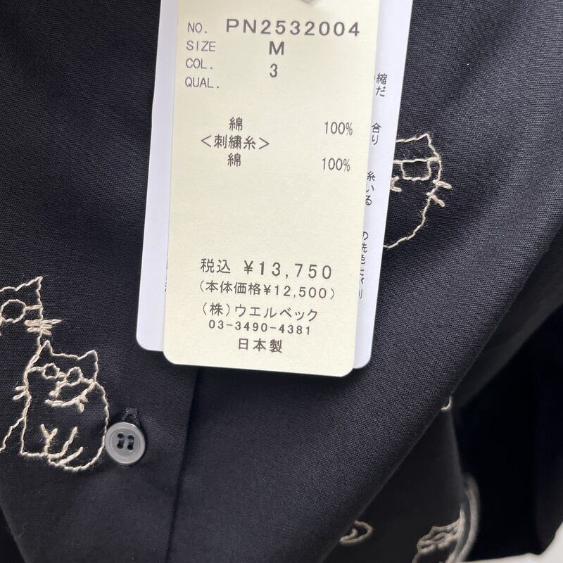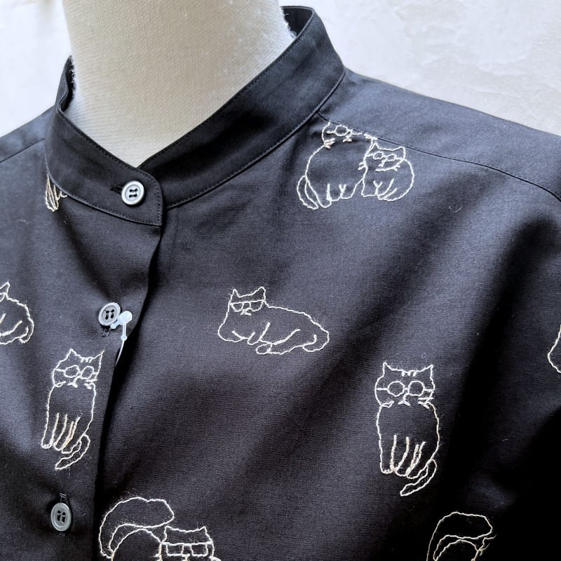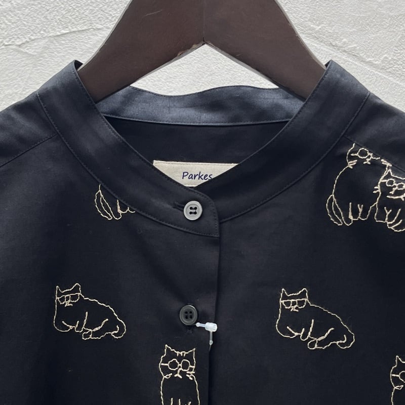 Parkes(パークス)ネコ刺繍 バンドカラー ドロップショルダー シャツブラウス PN2532004