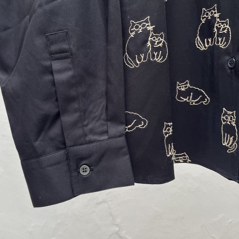 サングラスをかけたネコちゃんの刺繍が可愛いドロップショルダーシャツ