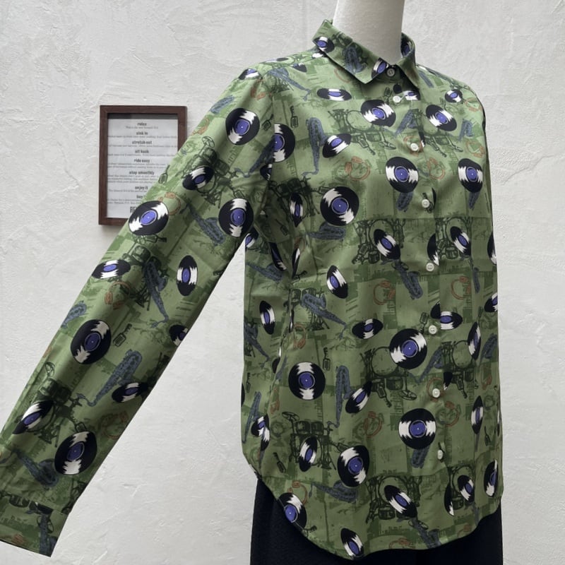 Parkes(パークス)レコード柄 レギュラーカラー シャツ PN2532017