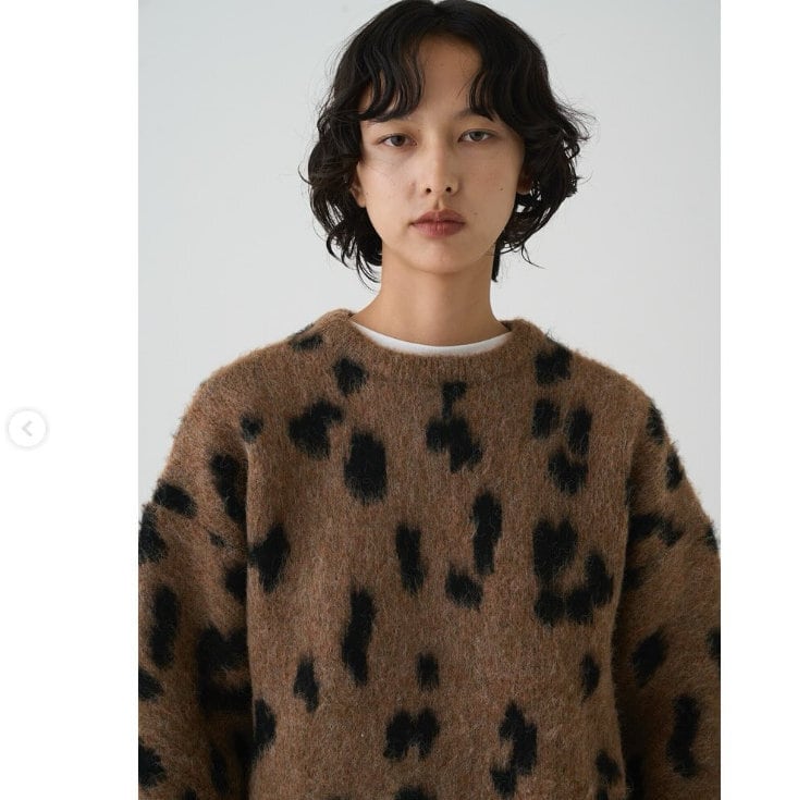 【即納可】Boutique Ordinary (ブティックオーディナリー )チーター柄ダブルジャガードで編み ニット Boutique Ordinary BO25-302N
