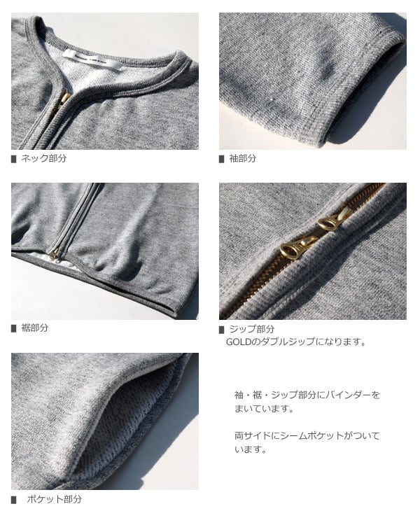 harmonie(アルモニ) ヴィンテージ 裏毛 ノーカラー ダブル ジップアップ カーディガン 62590585