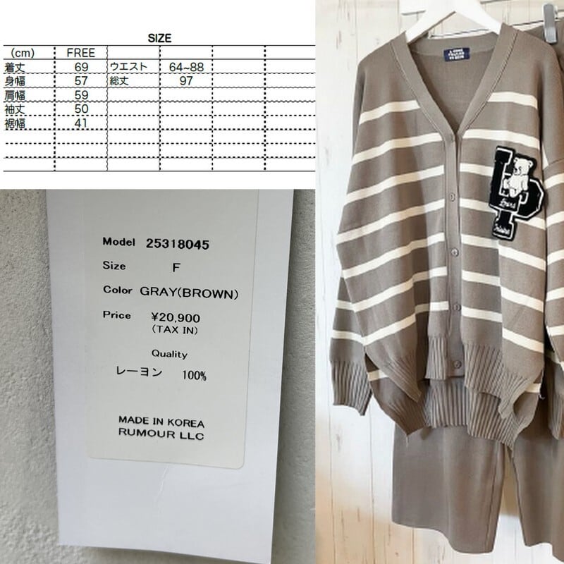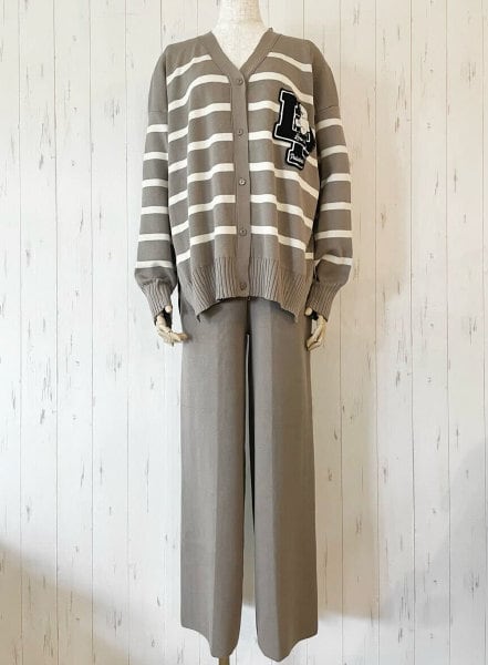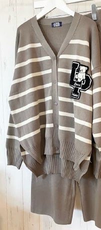 【即納】L’OURS POLAIRE ET BLEU / ルスポレール&ブリュ (ルスポレ) ボーダーカーデセットアップ グレー 25318045