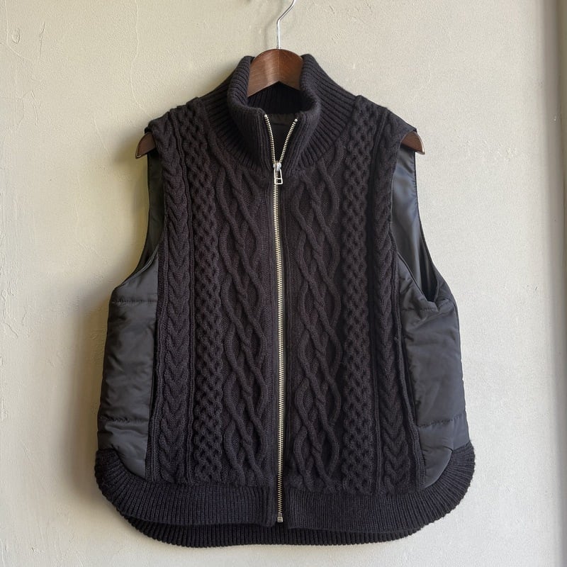 フロントにふわっと柔らかなケーブルニットを使ったジップアップベスト