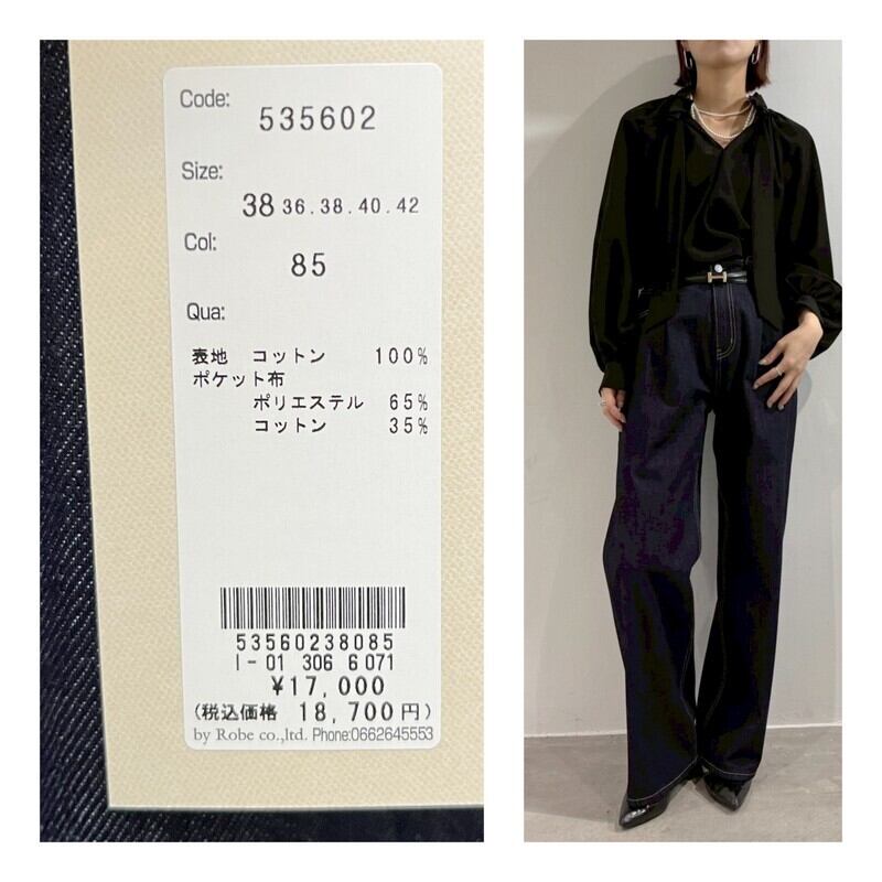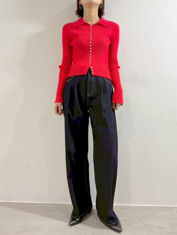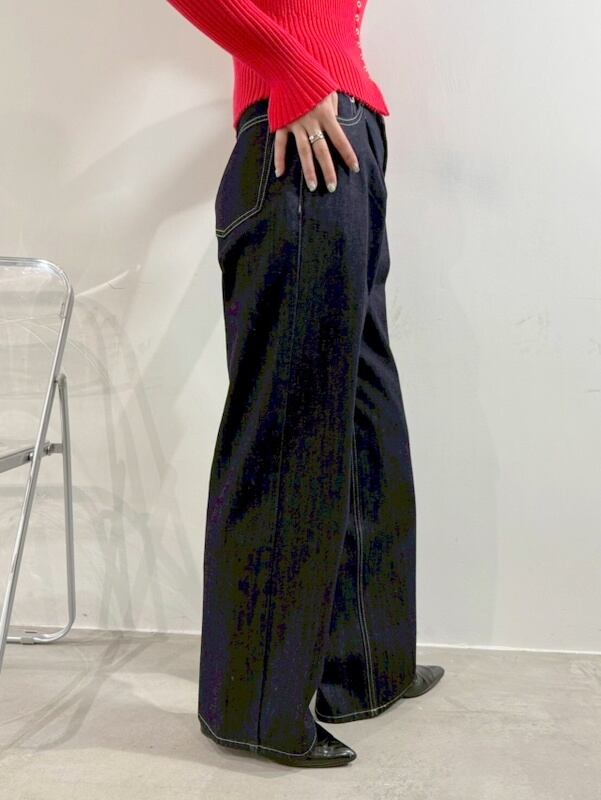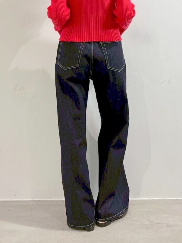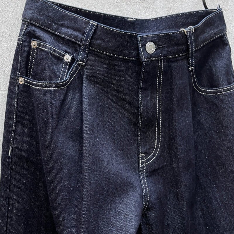 濃いめのワンウォッシュデニムのため落ち着いた印象で少し綺麗めよりにシックな雰囲気で着こなせます