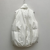 首元まで暖かいスタンドネックデザインのダウンベスト。
