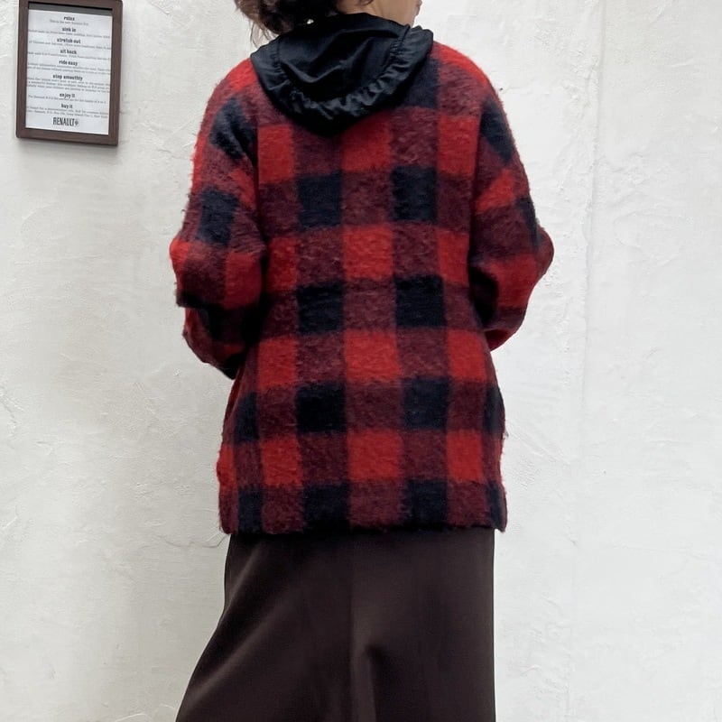 普段使いの羽織りとしても取り入れやすく、コーディネートのアクセントになるバッファローチェック柄が魅力。