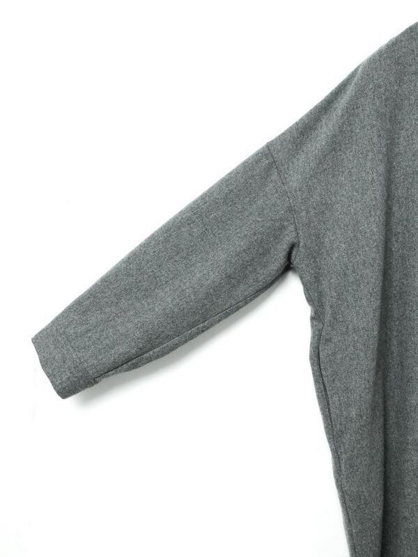 フロントボタン仕様。若干の前後差を付けた丸みのあるデザインはmizuiro indらしい着こなしを演出します。