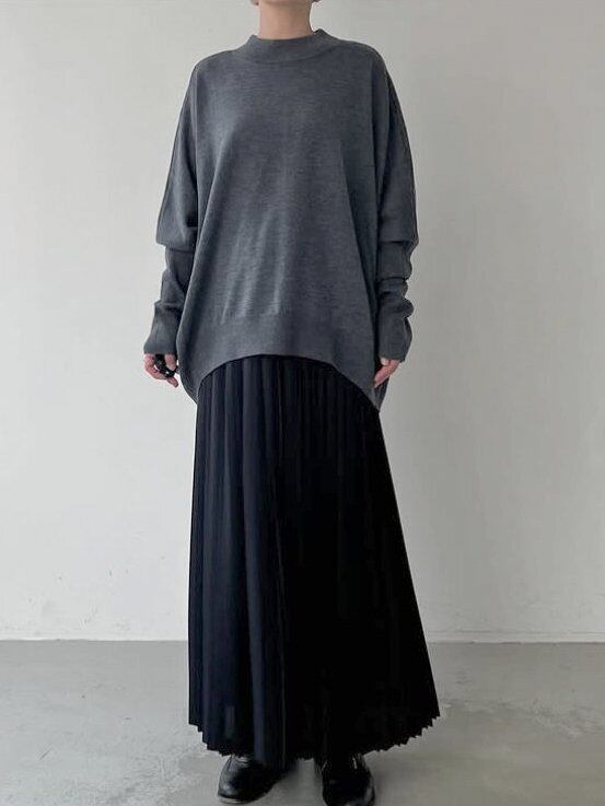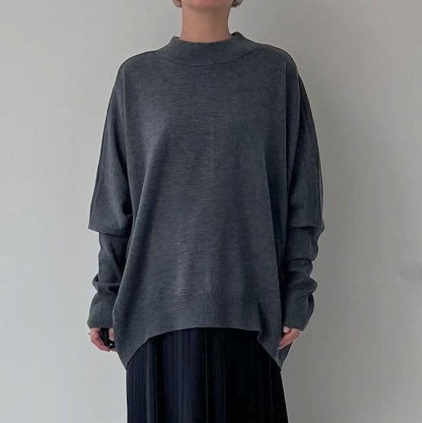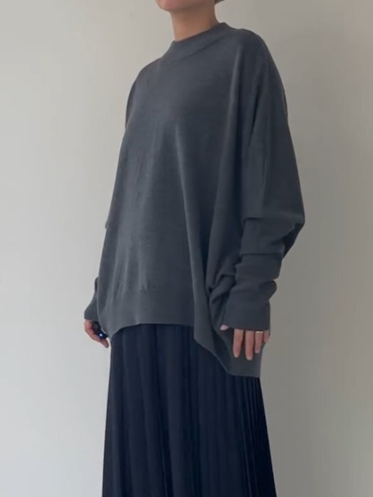 mizuiro-ind(ミズイロ-インド)リブスリーブ コクーンプルオーバー 4-220106