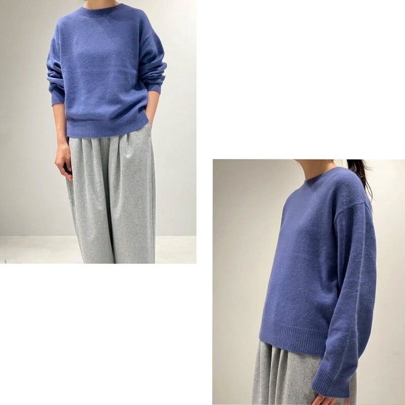 ふわっとした柔らかさと、程よい薄さと軽さのあるラクーン混ニット