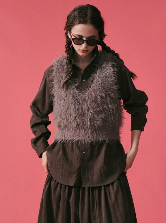 毛足のあるショート丈なので、上半身にポイントが出来て、バランスアップ効果大!ワンピ合わせや、ジャケットインのアクセントにも◎