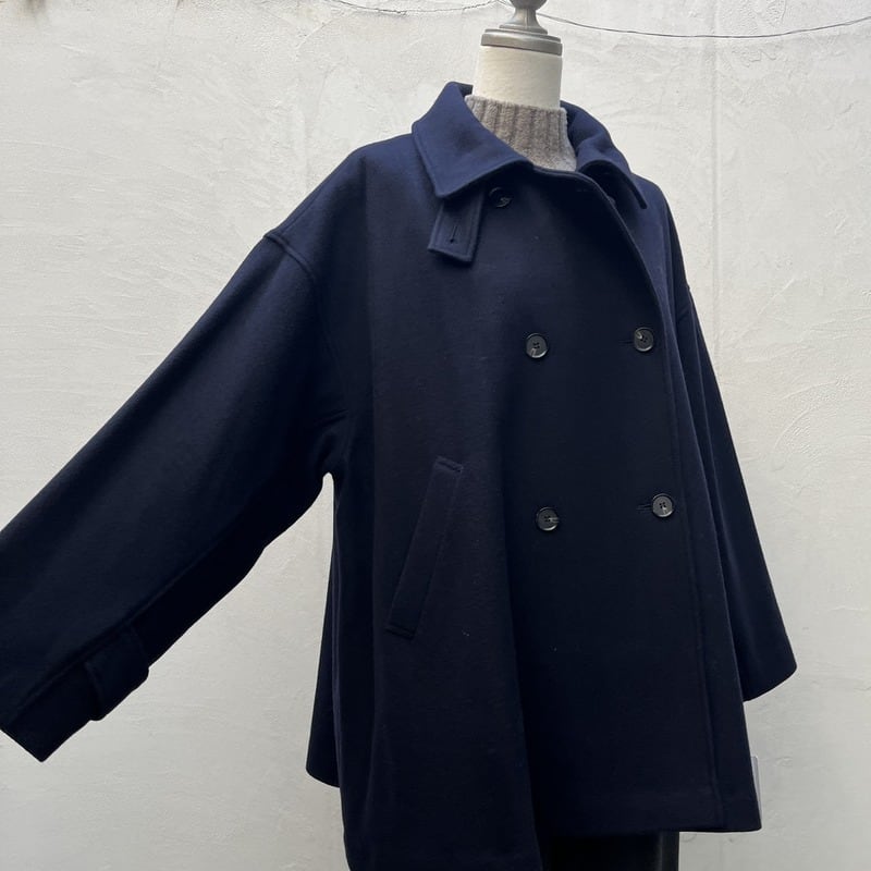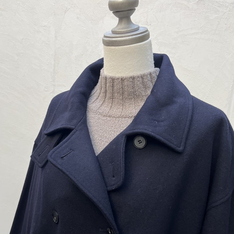 程よいAラインシルエットなので厚手のニットも着やすく、袖幅にもゆとりを持たせています。