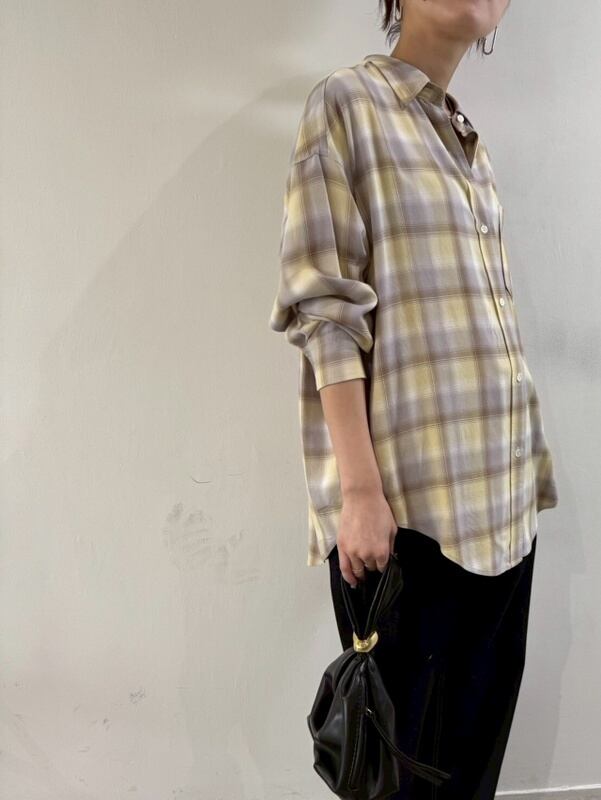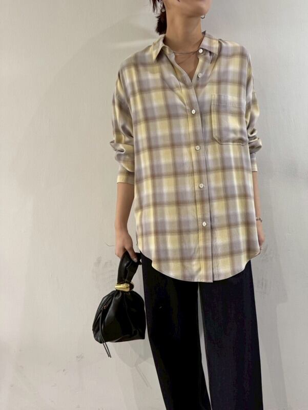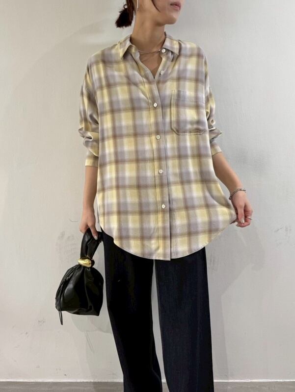 cafune (カフネ)セルロース オンブレ チェックシャツ 535943 イエロー