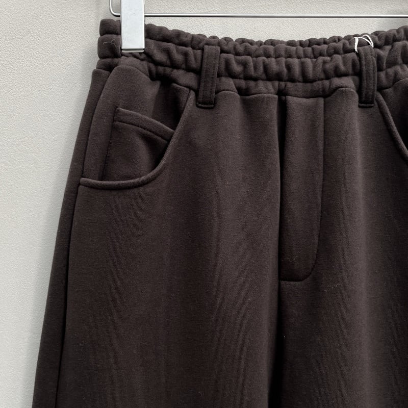 素材には、しっかりとした厚みがありながらも柔らかな裏毛スウェットを使用し、身体のラインを拾いにくく、安心感のある穿き心地です。